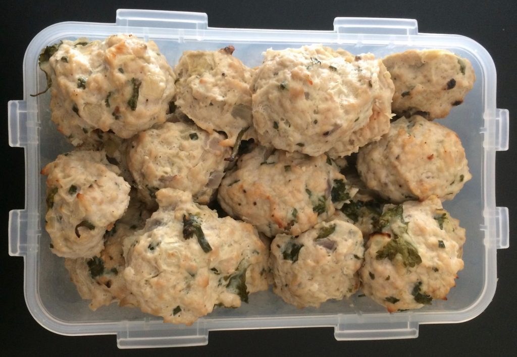 לקרוץ מהתערובת כדורים עם הידיים, או ליצור גושים עם כף / כפית. אני משתמשת בכף גלידה קפיצית קטנה.